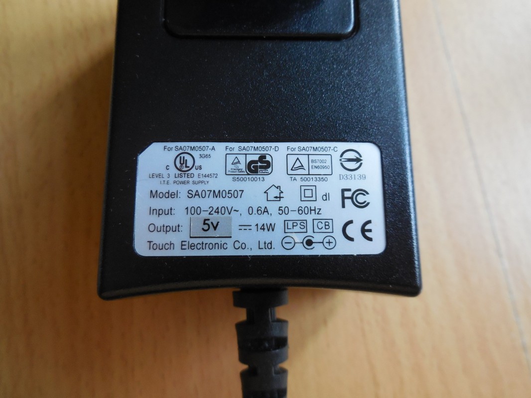 Napájecí adaptér Touch Electronic Co., Ltd., model SA07M0507.