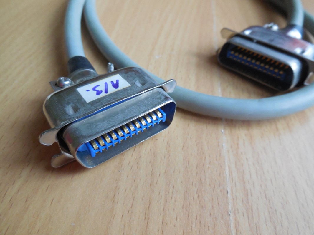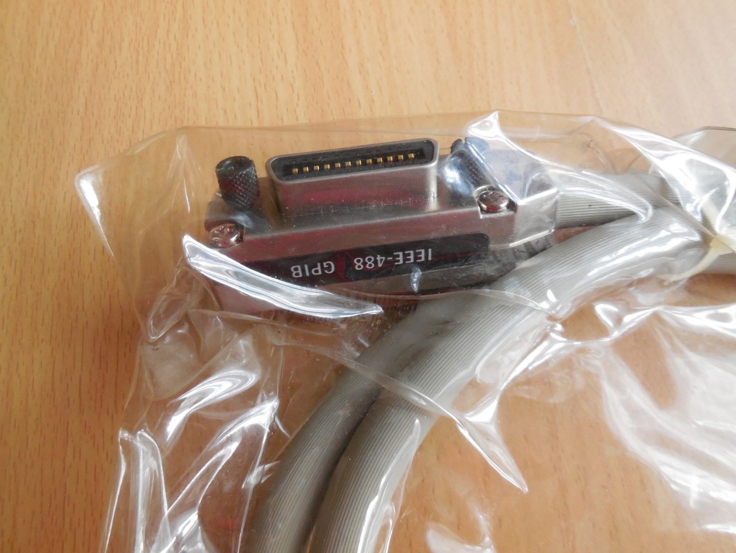 První kabel (v sáčku) je klasický IEEE-488/GPIB kabel. Má standardní konektory IEEE-488, což jsou 24pinové paralelní konektory používané k propojení měřicích přístrojů nebo řídicích jednotek s počítačem. Označení "IEEE-488 GPIB" odpovídá standardu. Balení naznačuje, že může být nový nebo minimálně velmi zachovalý.