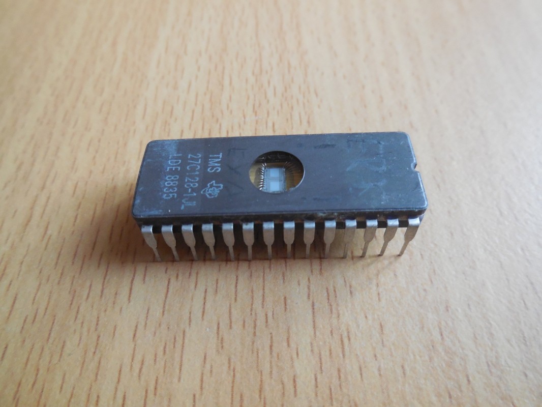 Čip TMS 27C128-1JL je EPROM paměť (Erasable Programmable Read-Only Memory) od Texas Instruments.
