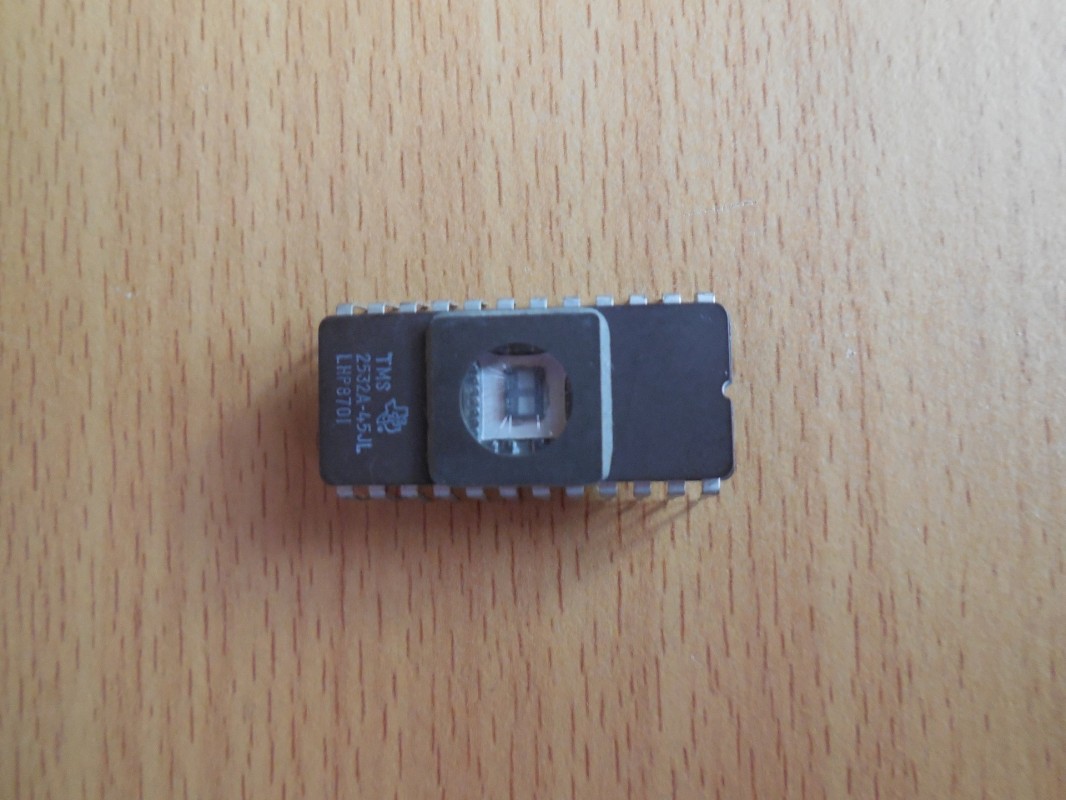 EPROM paměťový čip TMS 27C256-15JL od Texas Instruments.