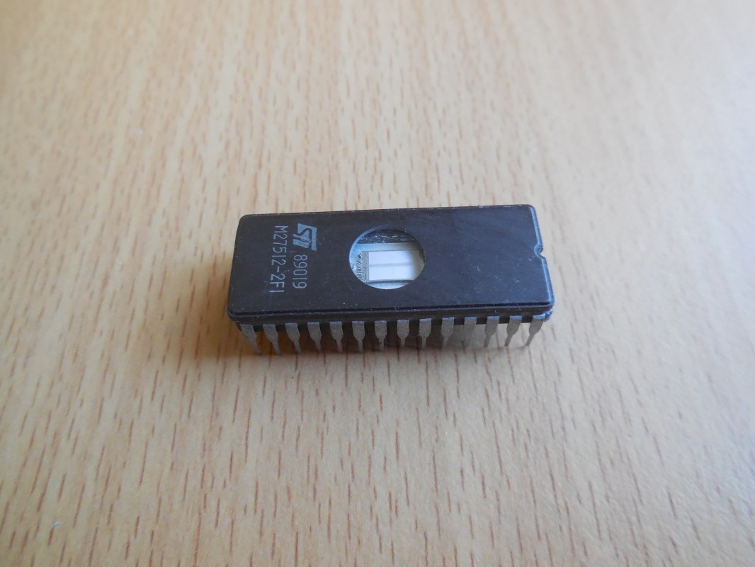 Čip M27512-2F1 od společnosti STMicroelectronics je 512 Kibibit (64 KiB) UV mazatelná a elektricky programovatelná paměť EPROM, organizovaná jako 65 536 slov po 8 bitech.