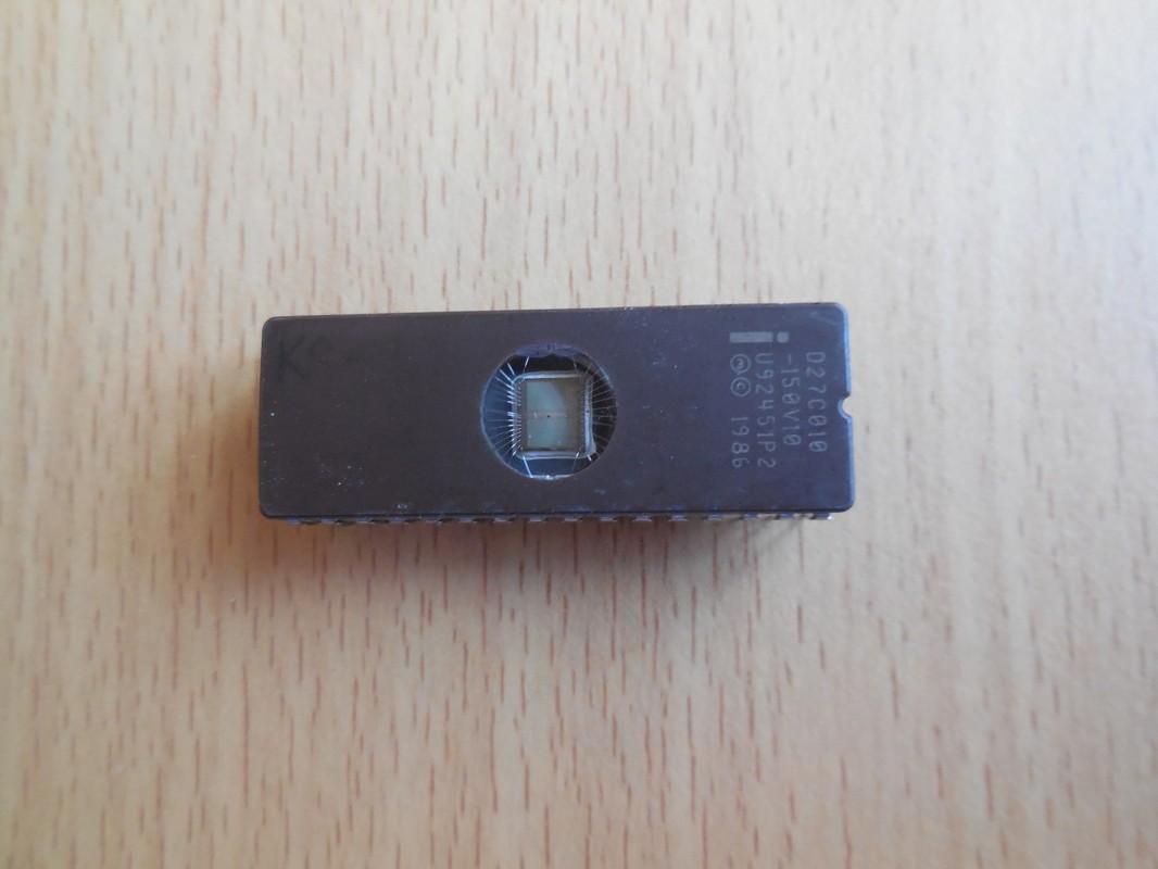 Čip Intel D27C010-150V10 je 1 Mbit (128K x 8) UV mazatelná programovatelná paměť pouze pro čtení (EPROM) od společnosti Intel.