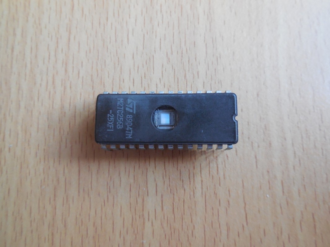 EPROM čip STMicroelectronics M27C256B-25F1 je vymazatelná programovatelná paměť (EPROM – Erasable Programmable Read-Only Memory) od společnosti STMicroelectronics. Konkrétně jde o model s kapacitou 256 Kb (32K x 8 bitů).