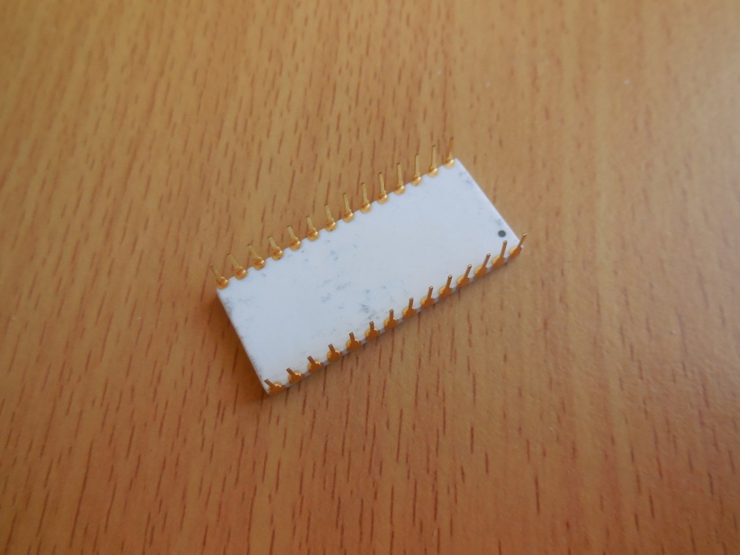 Podle keramického pouzdra a zlatých kontaktů se jedná o starší, pravděpodobně vojenskou nebo průmyslovou verzi čipu. Čipy tohoto typu se používaly v raných PC, průmyslových řídicích systémech a speciálních vestavěných aplikacích.