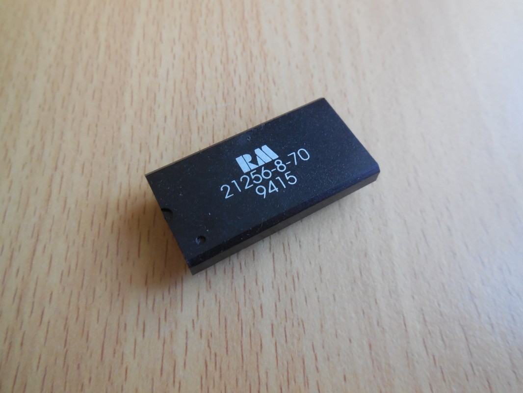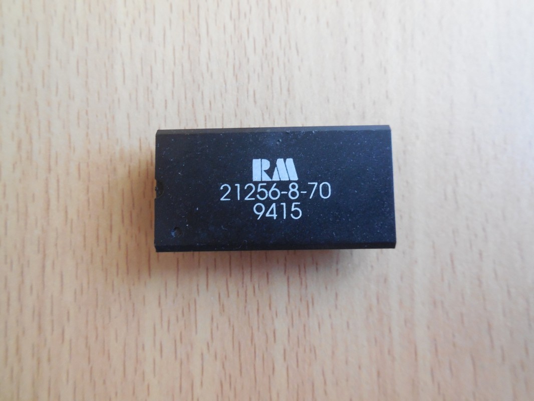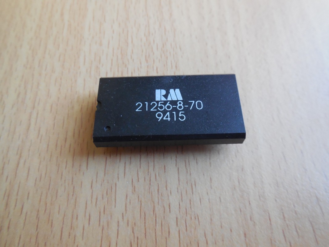 Integrovaný obvod označený jako RAM 21256-8-70 9415. Tento čip pravděpodobně patří mezi paměťové moduly RAM, konkrétně statickou RAM (SRAM) nebo dynamickou RAM (DRAM) používanou ve starších počítačových systémech nebo vestavěných zařízeních. Číslo 21256 by mohlo odkazovat na paměťový čip s kapacitou 256 Kb (kilobitů). Číslo 70 by mohlo označovat dobu přístupu v nanosekundách (ns).