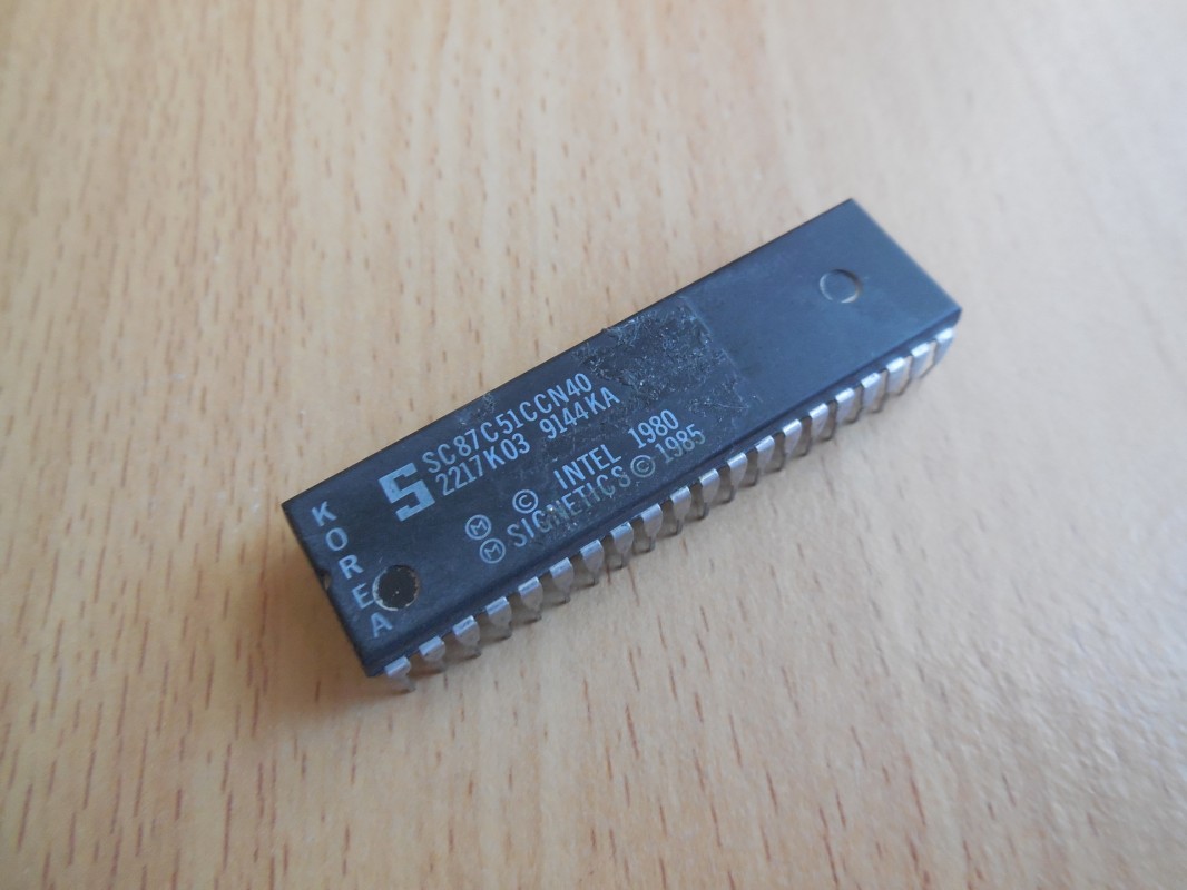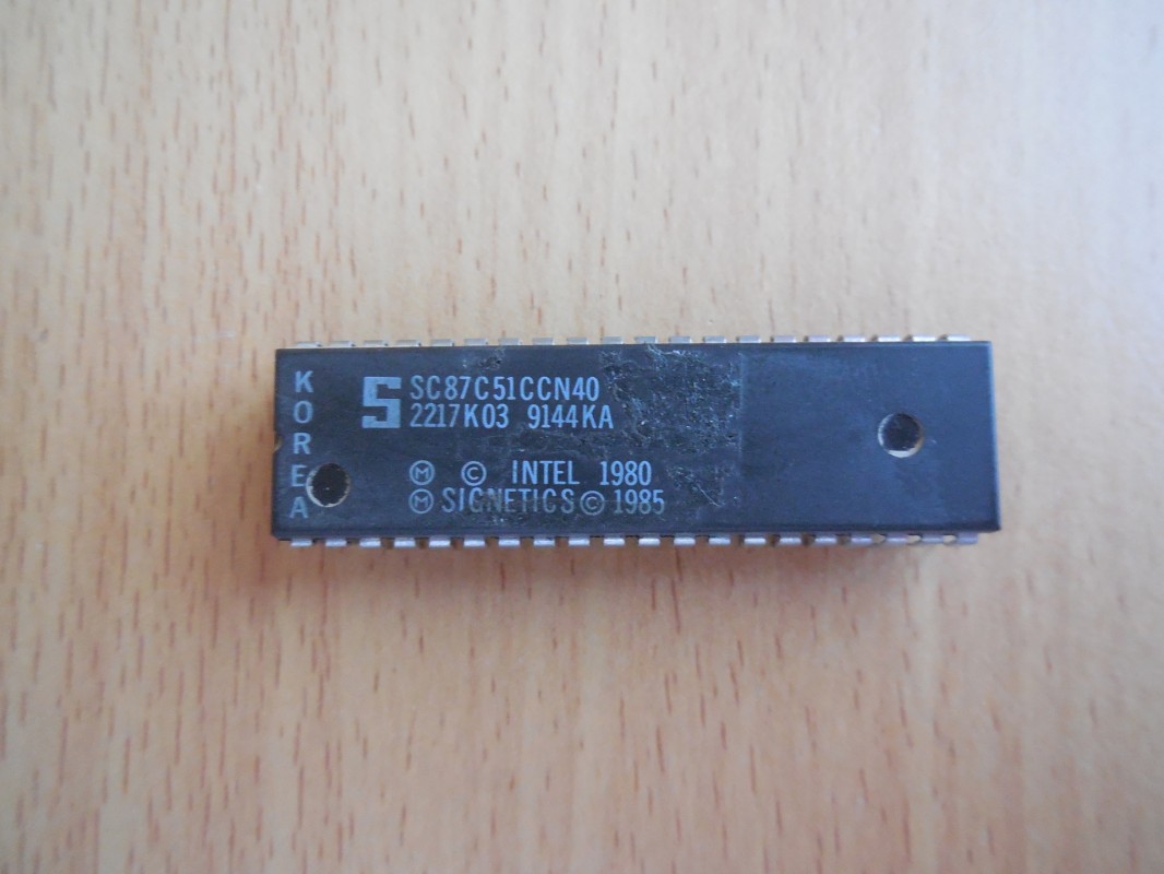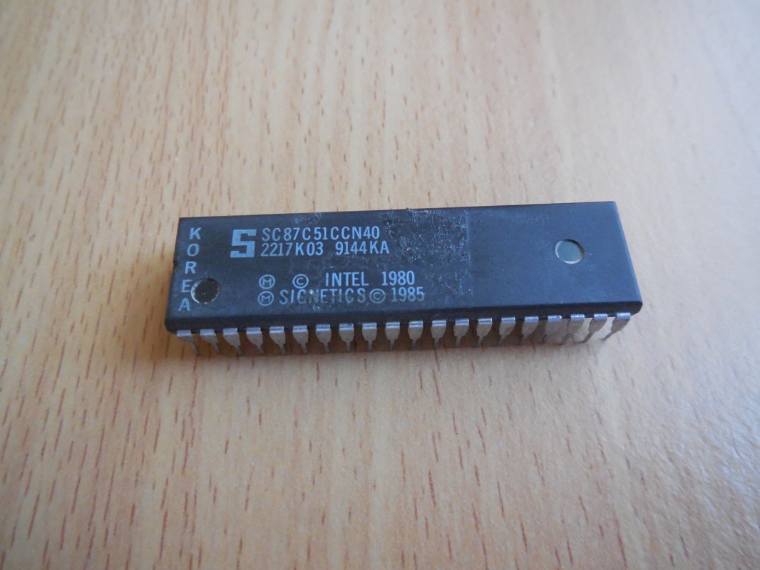 Integrovaný obvod SC87C51CCN40, což je varianta Intel 8051 – osmibitového mikrořadiče. Tento konkrétní čip byl vyráběn společností Signetics (pod licencí Intelu) a byl vyroben v roce 1991 (podle kódu "9144KA", kde "91" značí rok výroby a "44" týden výroby).
