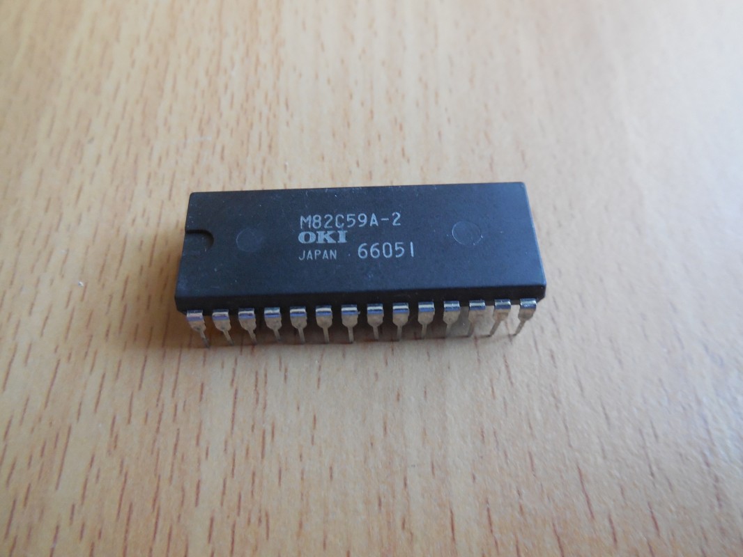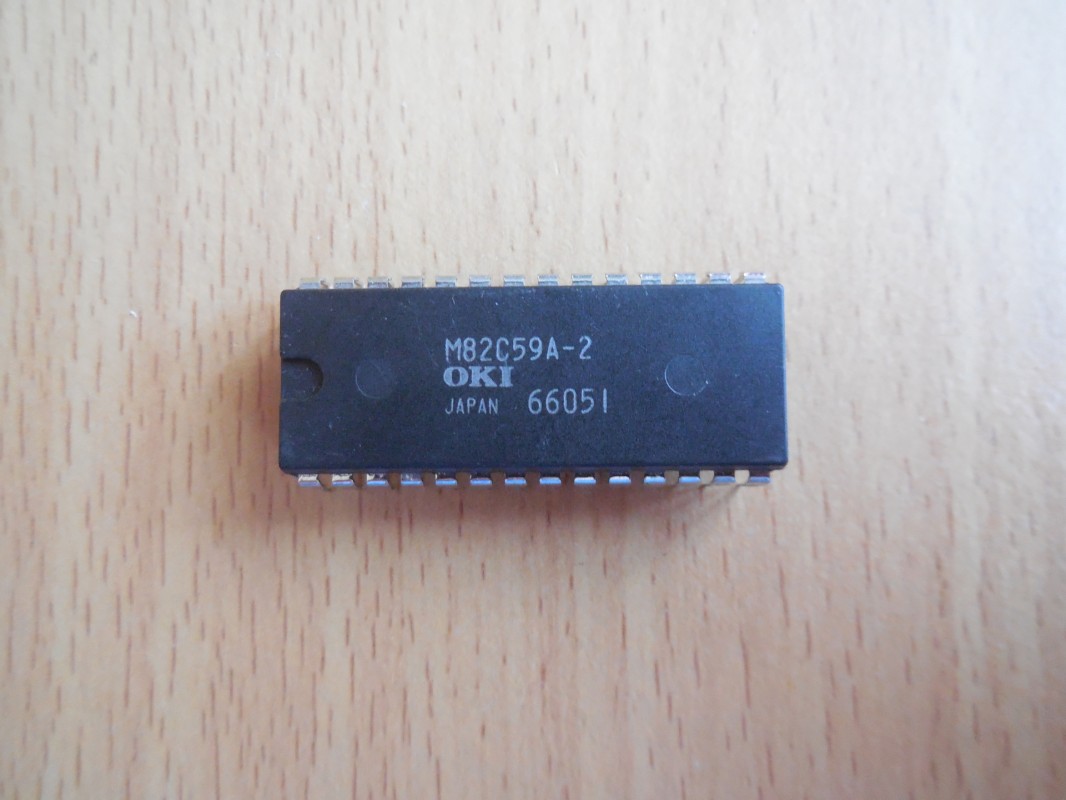 Čip M82C59A-2 je Programovatelný řadič přerušení (PIC - Programmable Interrupt Controller) od OKI, klon původního Intel 8259A.